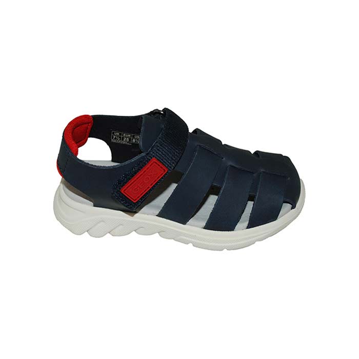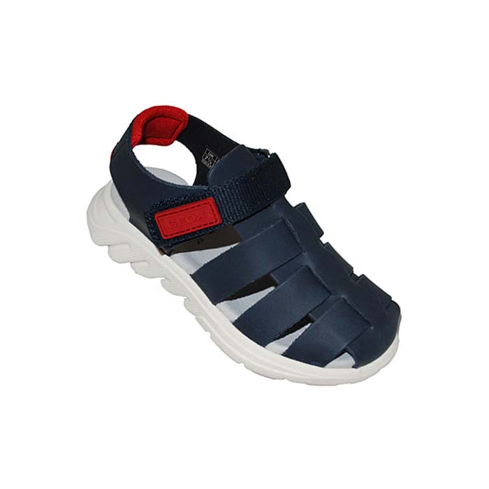 Παπουτσοπέδιλο μπλε κόκκινο, δερμάτινος ανατομικός πάτος, άνετη σόλα τεχνολογίας Respira που επιτρέπει στο πόδι να αναπνέει, αυτοκόλλητο κούμπωμα, σχέδιο με λουριά, GEOX