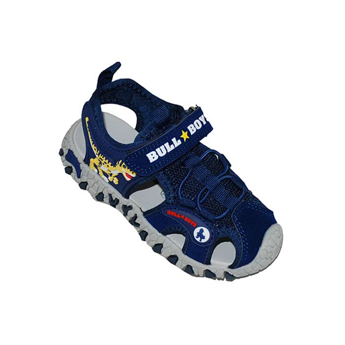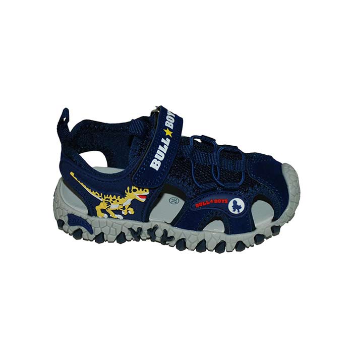 Παπουτσοπέδιλο μπλε, αυτοκόλλητο κούμπωμα και λάστιχα, σχέδιο με δεινόσυαρο, led στην σόλα, BULL BOYS