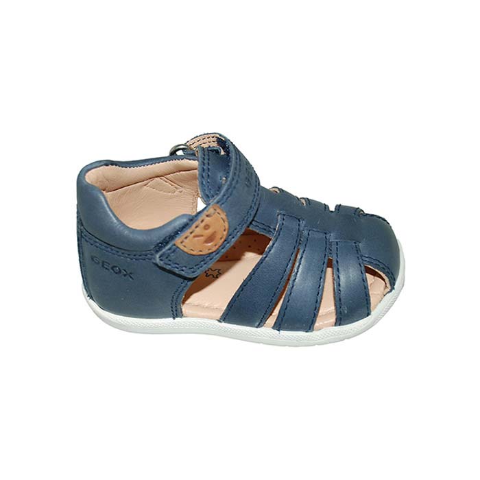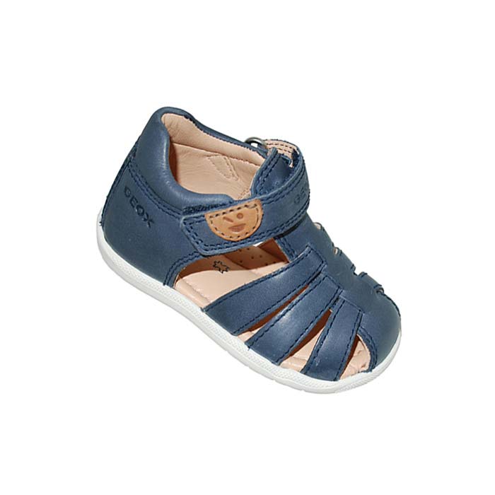 Παπουτσοπέδιλο πρώτα βήματα δερμάτινο μπλε, δερμάτινος ανατομικός πάτος, αυτοκόλλητο κούμπωμα, GEOX