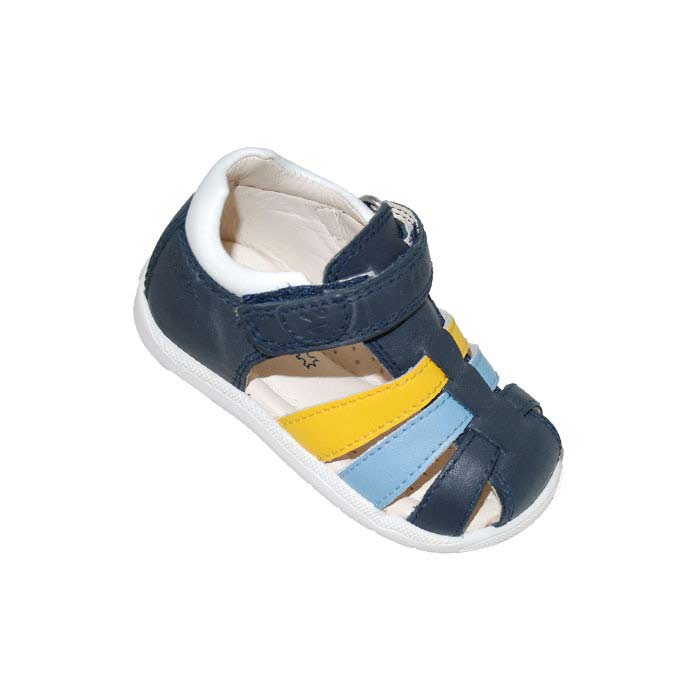 Παπουτσοπέδιλο πρώτα βήματα δερμάτινο μπλε κίτρινο