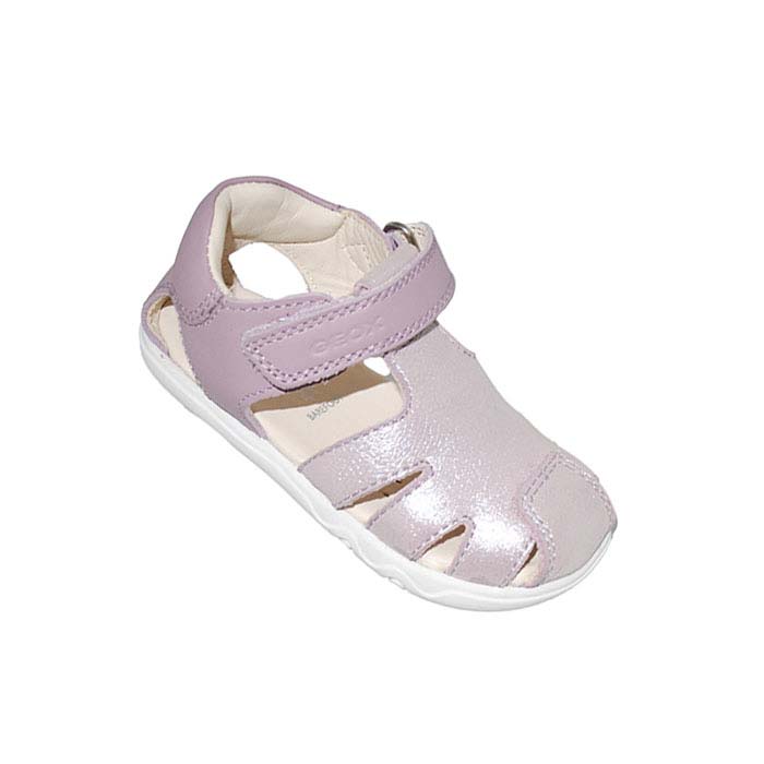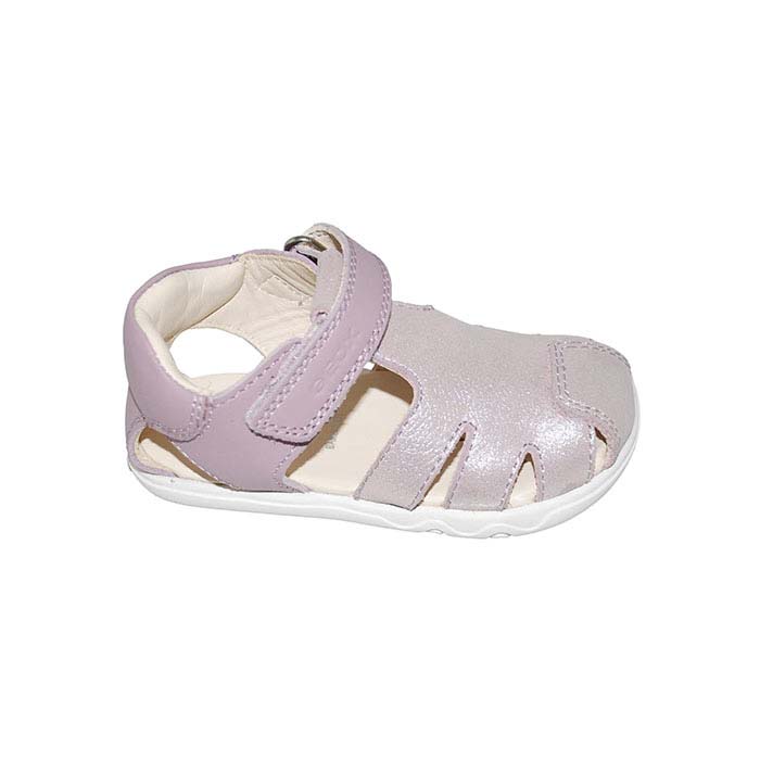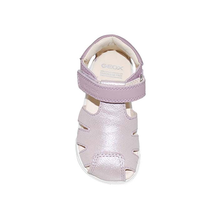Παπουτσοπέδιλο πρώτα βήματα δερμάτινο λιλά, δερμάτινος ανατομικός πάτος, αυτοκόλλητο κούμπωμα, σχέδιο με λουριά, GEOX