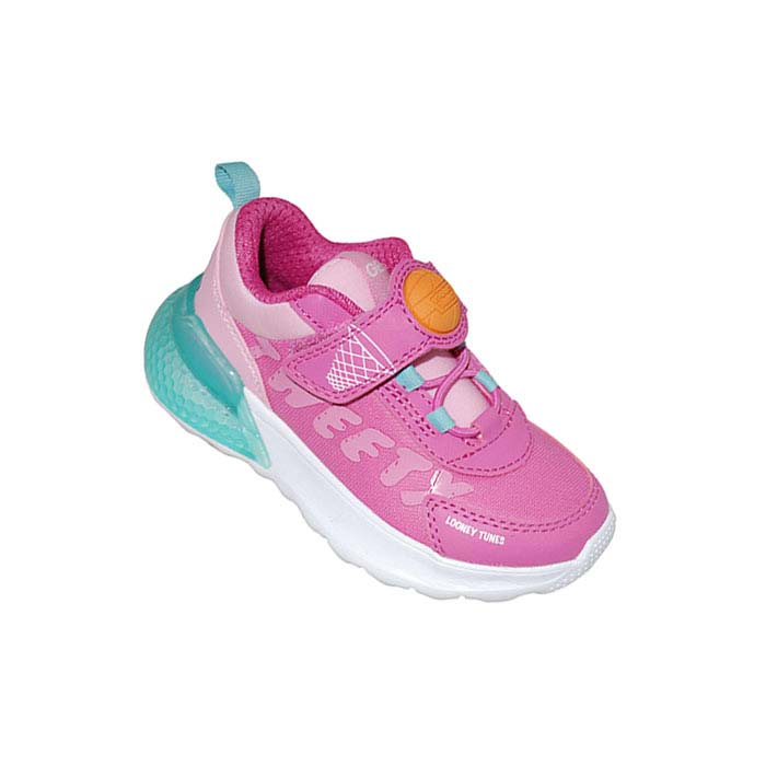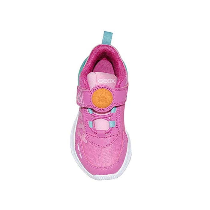 Αθλητικού τύπου φούξια ροζ, αυτοκόλλητο κούμπωμα και λάστιχο, κουμπί on/off για τα φωτάκια στην σόλα, σχέδιο με τον touiti, GEOX